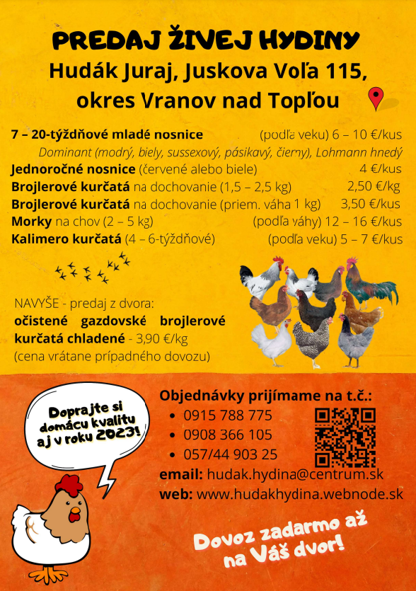 Ponuka nosníc, kurčiat, brojlerov a moriek