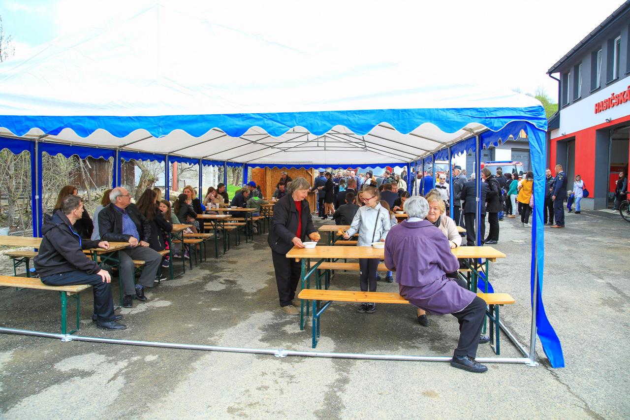 Areálom sa rozliehali tóny ľudovej hudby. Všetci prítomní si mohli pochutiť na hasičskom guľáši.