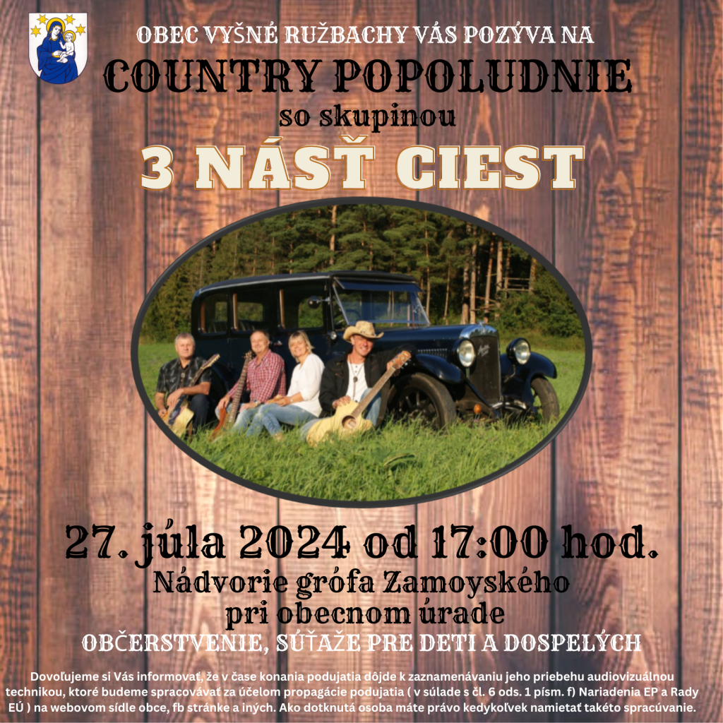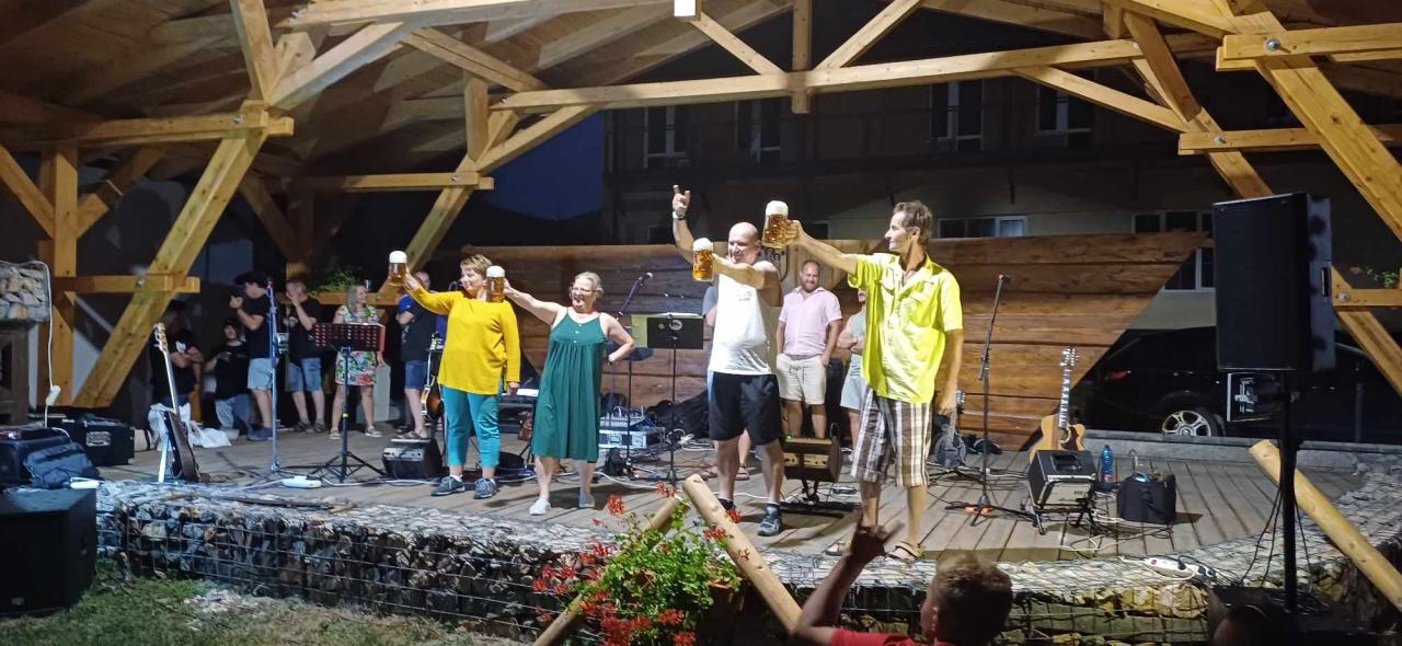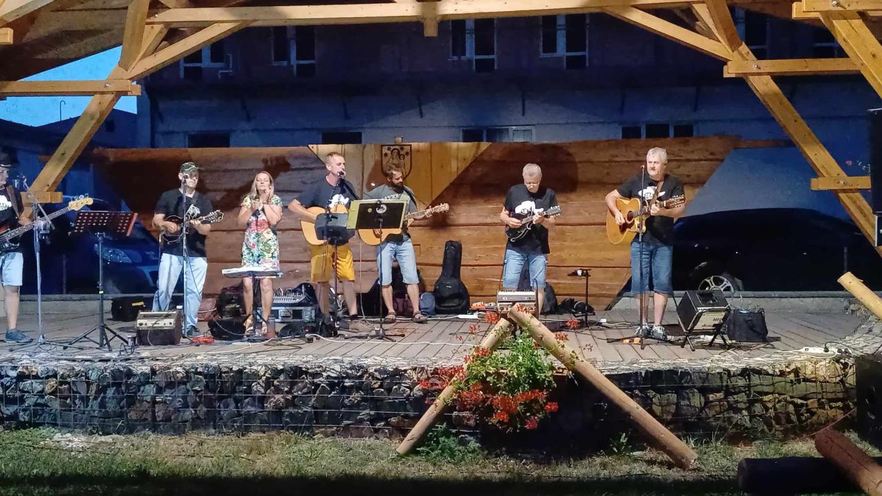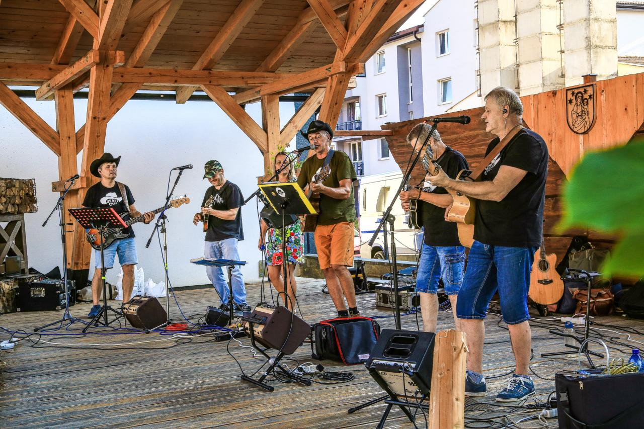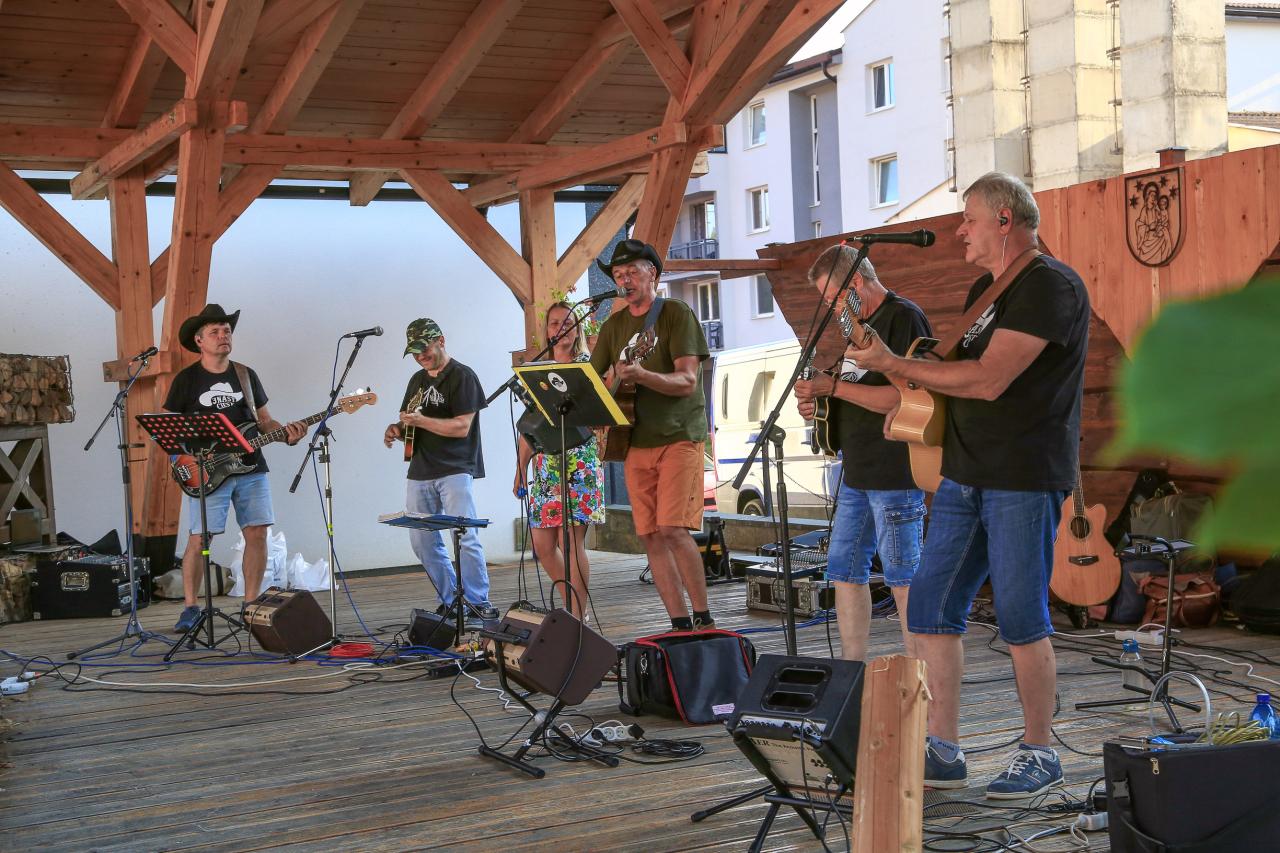 Nádvorie grófa Zámoyského pri obecnom úrade sa dňa 27.7.2024 rozozvučalo tónmi country hudby v podaní skupiny 3Násť ciest zo Spišskej Novej Vsi, ktorej členkou je aj naša rodáčka Andrea. Urobili skvelú atmosféru a zábavu. Prítomní mali možnosť vypočuť si aj pár tónov z gitary v podaní pána starostu. Medzi jednotlivými hudobnými vstupmi boli pripravené súťaže pre deti a dospelých ako už tradičné pílenie dreva, zabíjanie klincov či držanie krígľa s pivom a pre deti s kofolou. Deti si mohli pošantiť na skákacom hrade. Občerstvenie zabezpečil Hostinec Havránek. V jednotlivých súťažiach mohli výhercovia získať Darčekový poukaz na kúpanie v kráteri či raňajky v tráve 😊 , občerstvenie v pohostinstve, 5 m palivového dreva, celodenný vstup na termálne kúpalisko Izabela, vrece zemiakov a reklamné predmety obce.