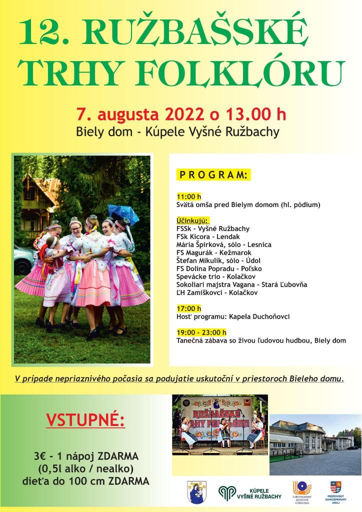 7. augusta 2022 sa konal už 12. ročník Ružbašských trhov folklóru, ktorý nezostal svojej povesti nič dlžný.