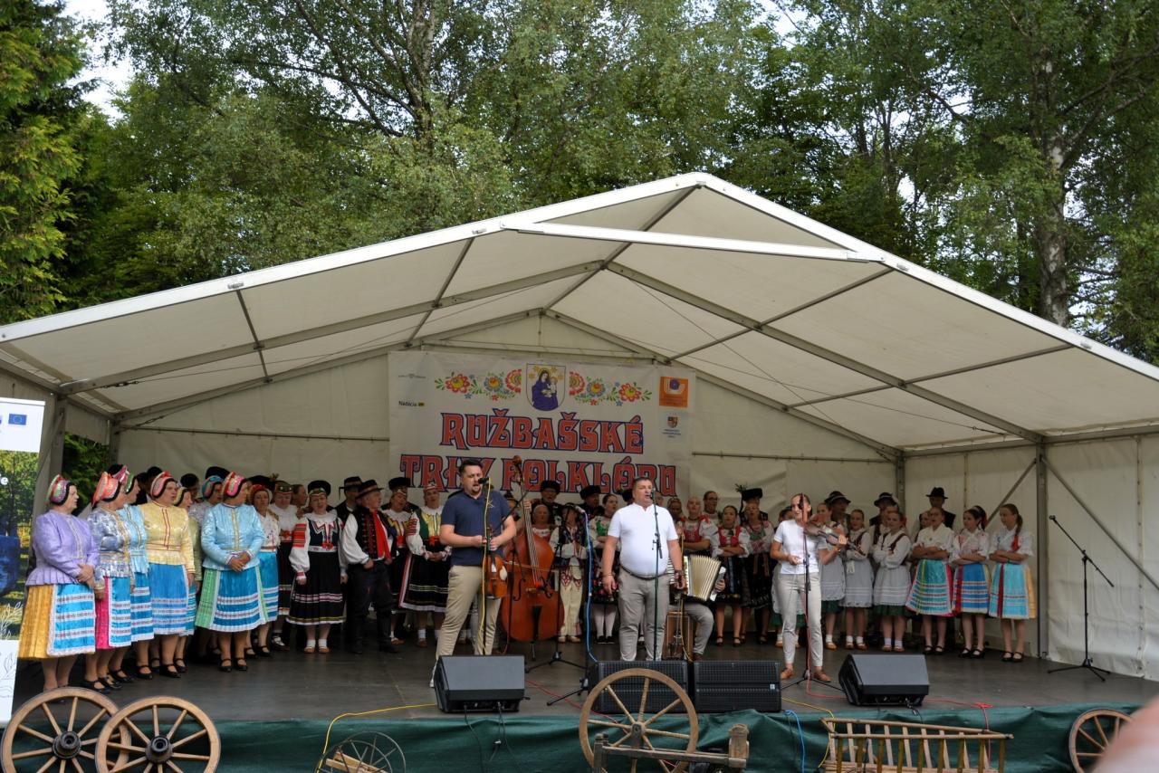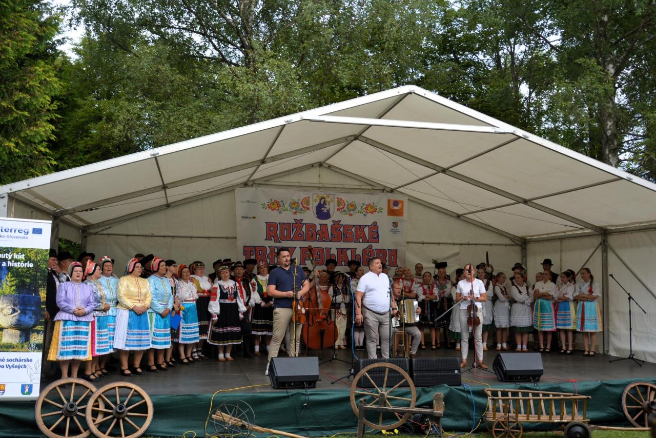 Po ročnej pauze spôsobenej nepriaznivým počasím patrila prvá augustová nedeľa 13. ročníku Ružbašských trhov folklóru. Nádvorie Bieleho domu v Kúpeľoch Vyšné Ružbachy zaplnilo množstvo stánkov s regionálnymi remeselníkmi, handmade výrobcami a s občerstvením. Podujatie začalo slávnostnou svätou omšou. O folklórnu hudbu, tradície a ľudové umenie sa postarali – FSSk Ružbašan z našej obce, FSk Taľar z Novej Ľubovne, SSK Dievčatá spod Groby z Kolačkova, SSk Jablonecka z Kežmarku, FS Maguranka zo Sp. Novej Vsi, Mária Špirková z Lesnice, ĽH Zamiškovci z Kolačkova. Po vystúpení skupín a súborov zaznela spoločná pieseň „ Goraľu.....“