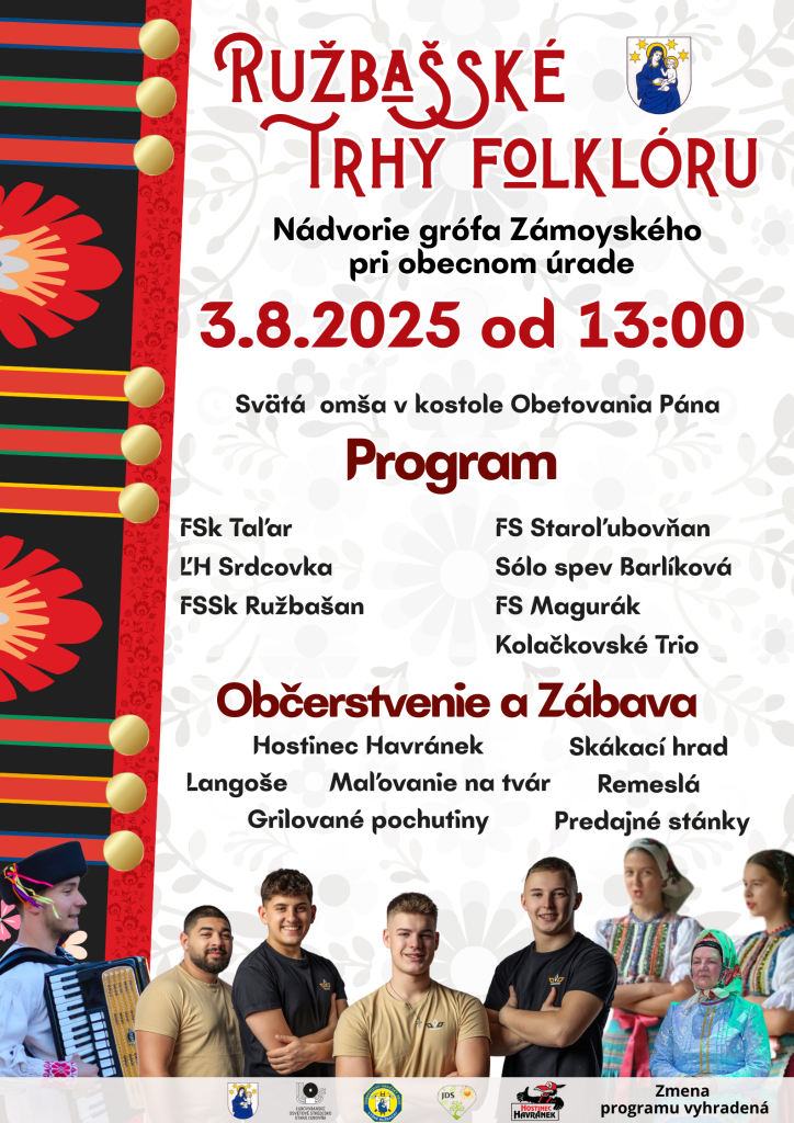 V nedeľu 3. augusta 2025 sa nádvorie grófa Zámoyského pri Obecnom úrade vo Vyšných Ružbachoch premenilo na centrum folklóru, hudby a remesiel.