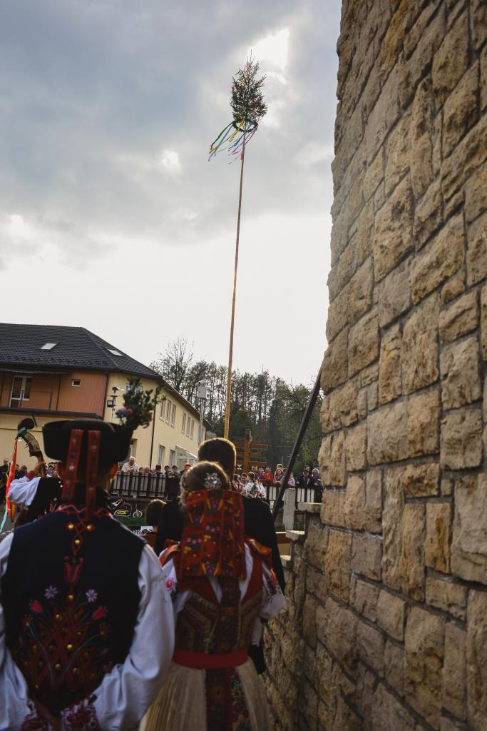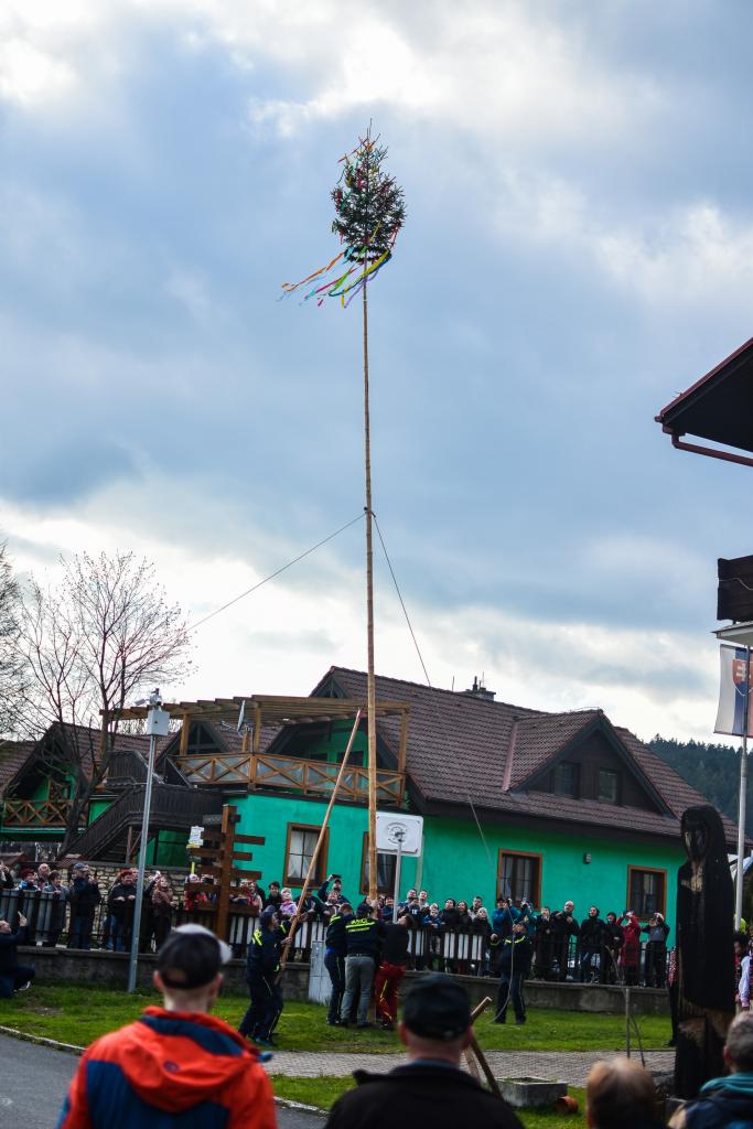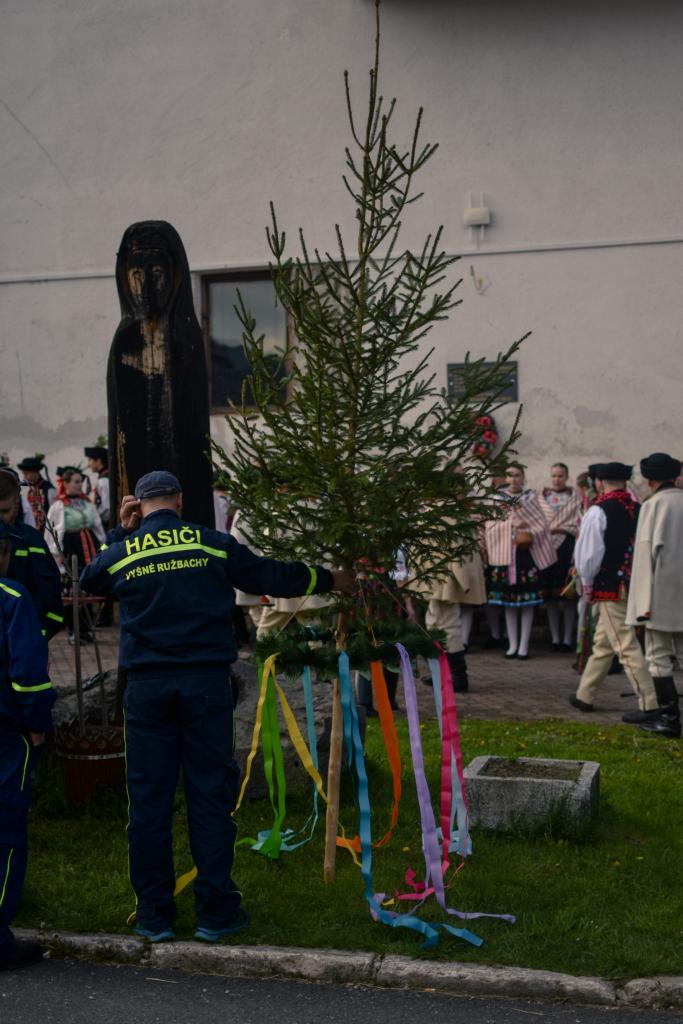 Vrcholec mája niesli od Požiarnej zbrojnice ku obecnému úradu členovia folklórnej skupiny, mladé dievčatá ho ozdobili stužkami a nakoniec ho členovia Dobrovoľného hasičského zboru Vyšné Ružbachy postavili. Dobrá nálada a príjemná atmosféra sa niesla celým podujatím. Občerstvenie zabezpečil Hostinec Havránek. Po postavení mája zábava následne pokračovala až do večerných hodín.