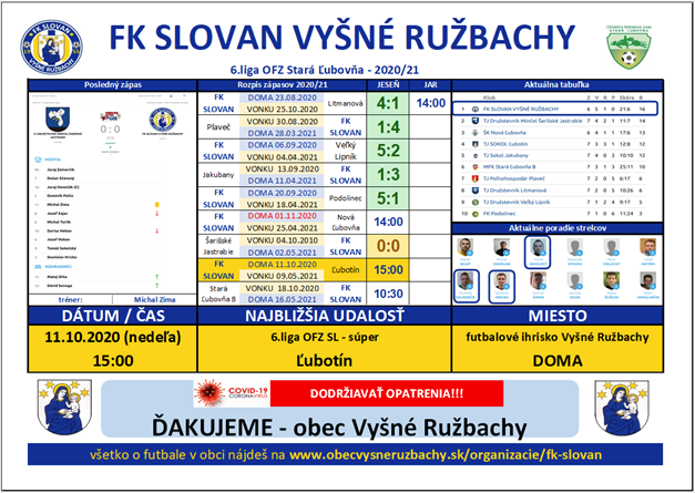 V nedeľu 11.10.2020 o 15:00 hráme doma s Ľubotínom